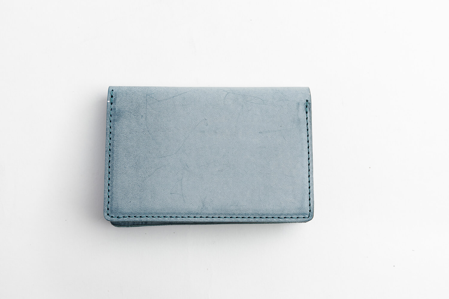 ベーシックを追求したデザインを味わいの深い素材で仕上げているのでビジネスはもちろんカジュアルな場面でも使えるカラーが豊富でお洒落な名刺入れ。 イタリア、コンチェリア・ラ・ブレターニャ社/ワックスレザー”ゴースト”を使用。 表面に浮き出たワックス成分が白化した”ブルーム”が独特の表情を醸し出します。 フルベジタブルレザーの質感や風合い、経年変化によるエイジングが楽しめます。